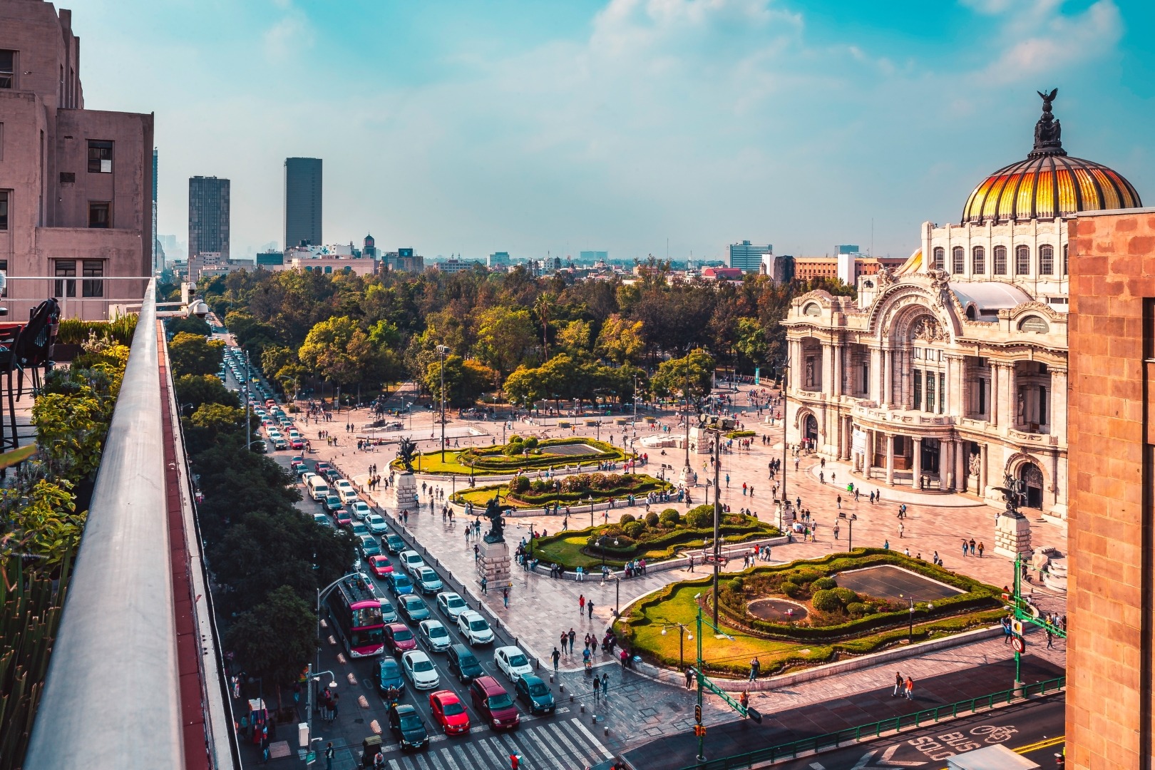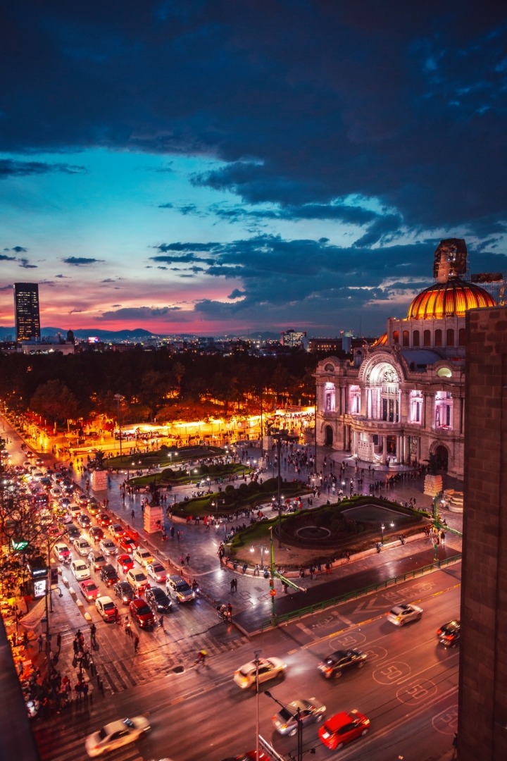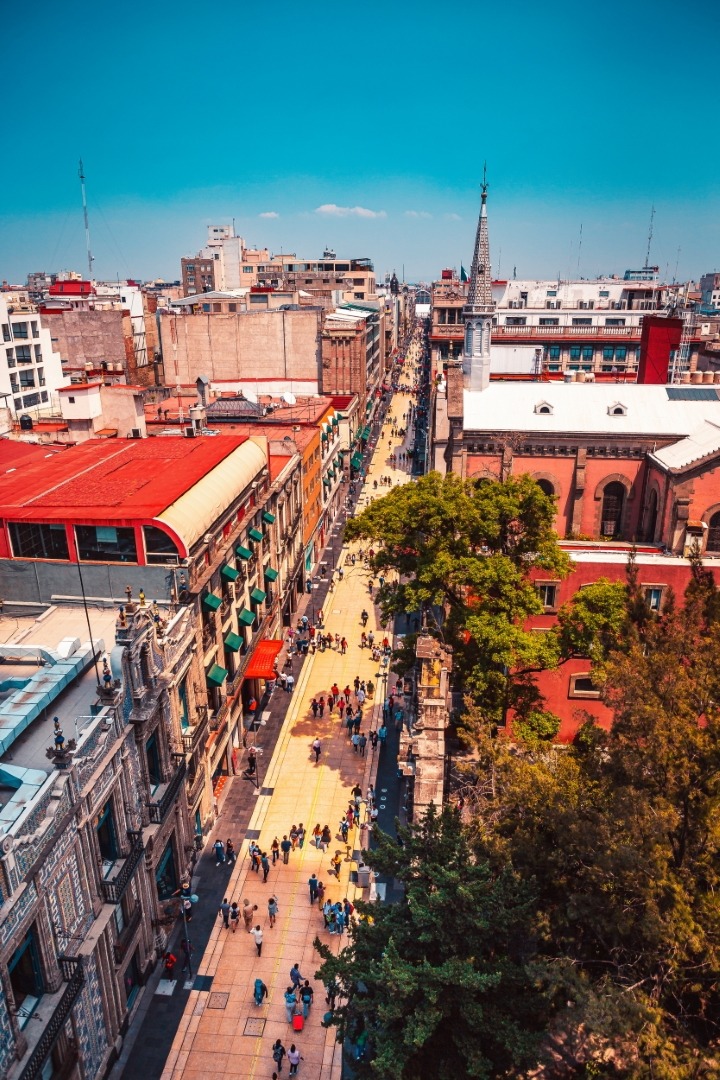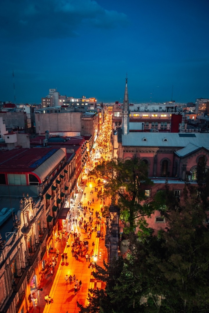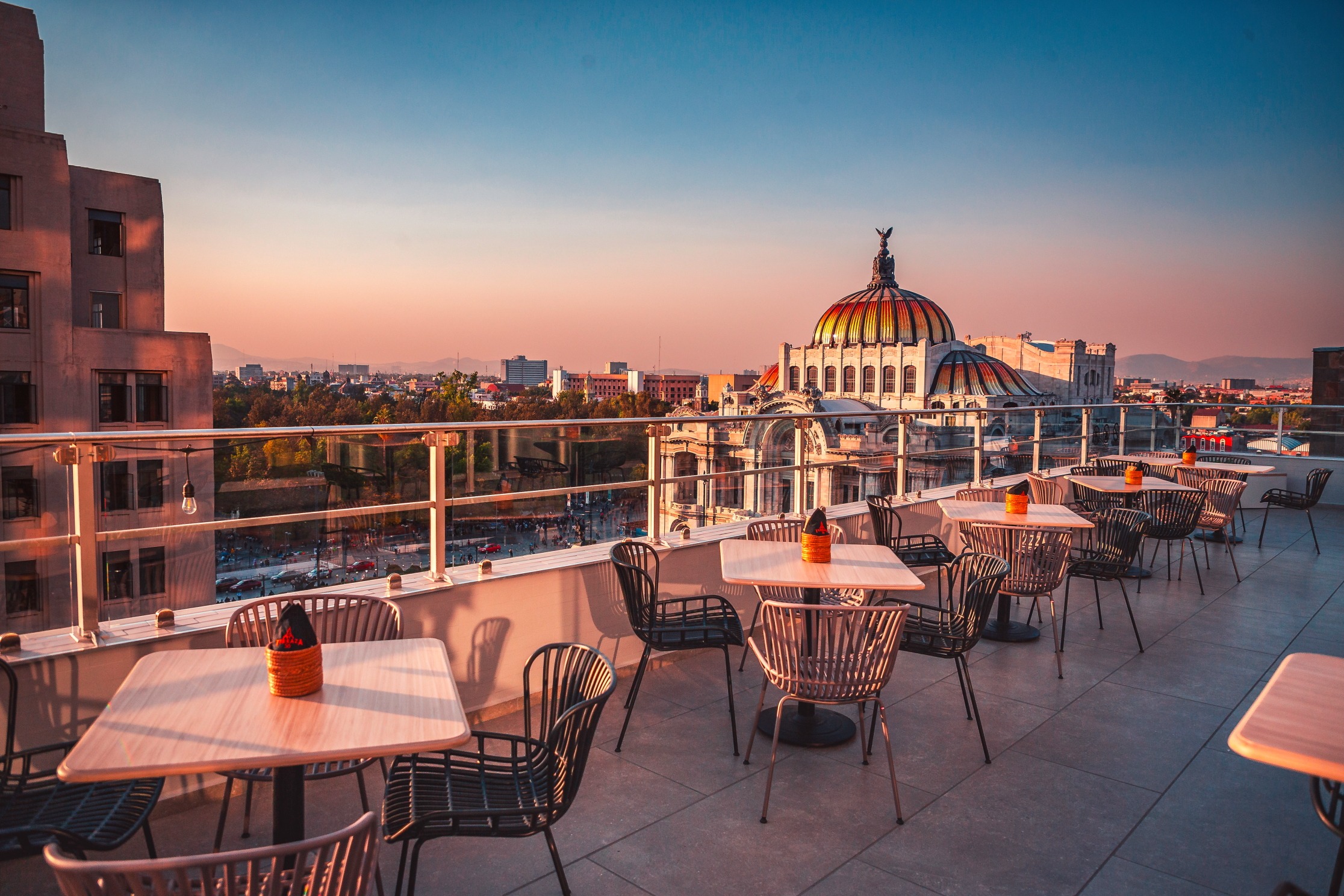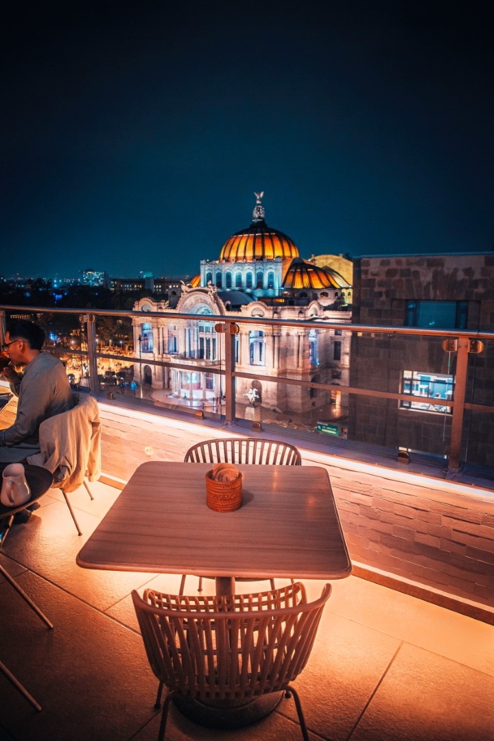 La vista es impresionante: Por un lado una increíble perspectiva hacia la Alameda y el Palacio de Bellas Artes, así como a toda la Calle de madero, el Ex Convento de san francisco y todos sus alrededores.