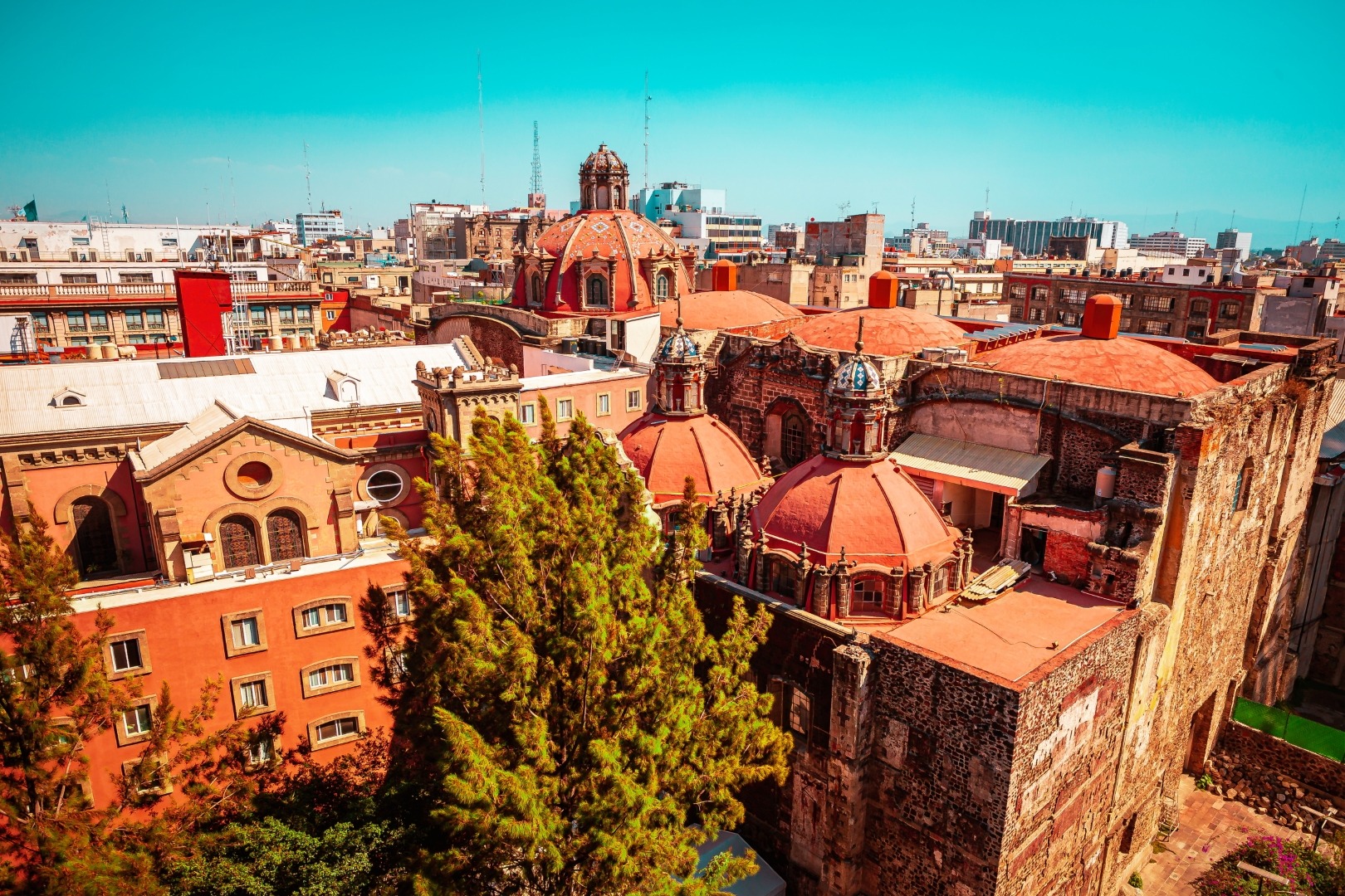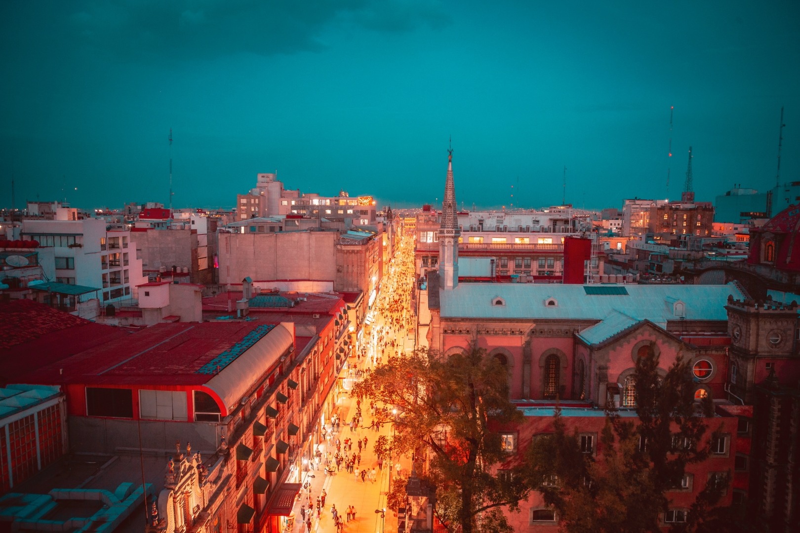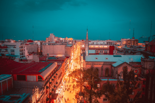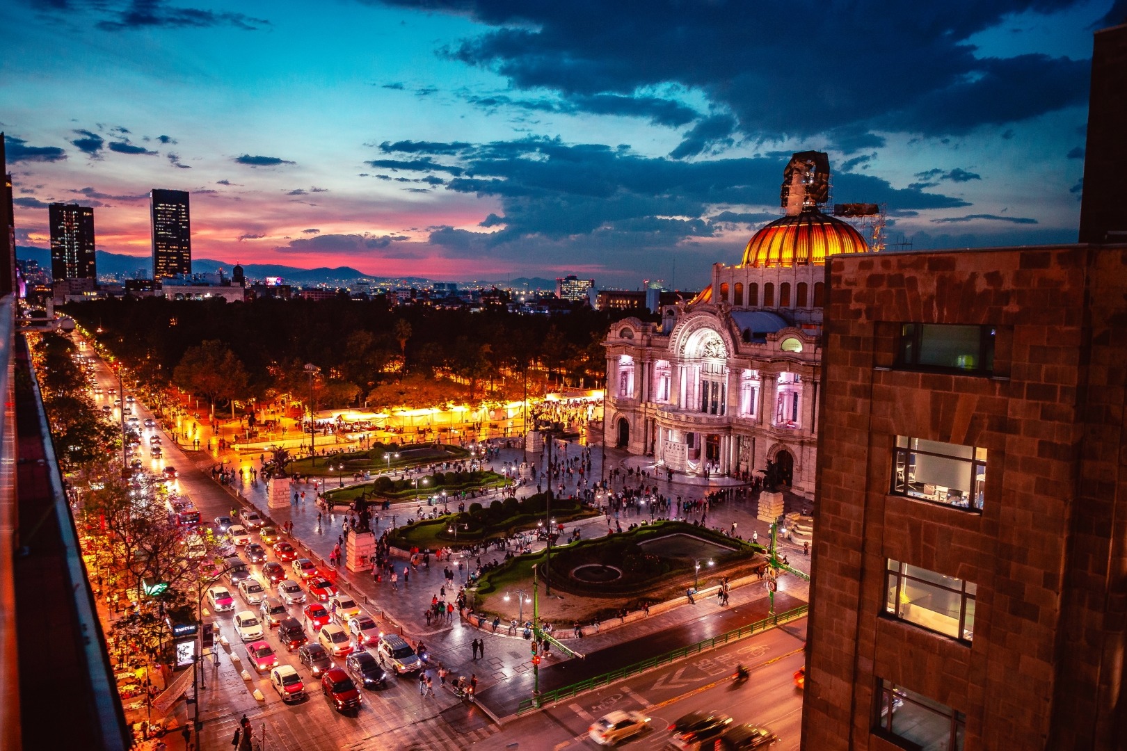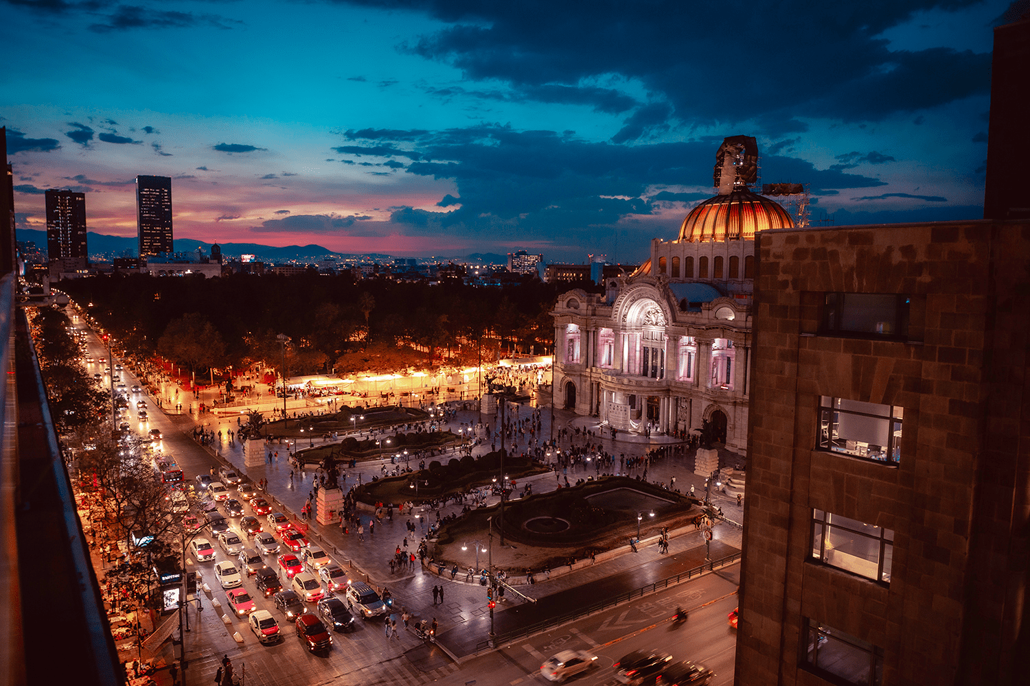 La vista es impresionante: Por un lado una increíble perspectiva hacia la Alameda y el Palacio de Bellas Artes, así como a toda la Calle de madero, el Ex Convento de san francisco y todos sus alrededores.
